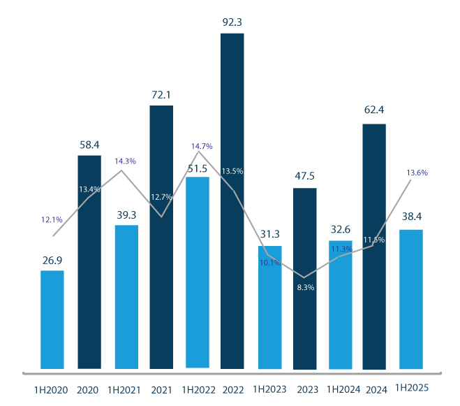 Revenues breakdown by geographical area as of June 30th, 2025