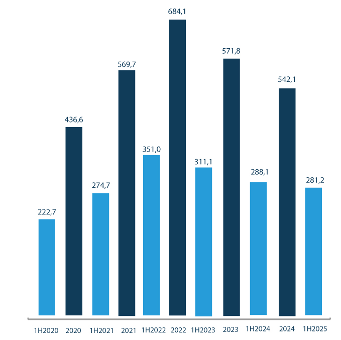 Revenues breakdown by line of product as of June 30th, 2025